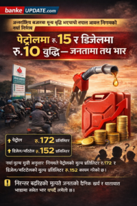नयाँ मूल्य सूची अनुसार अब पेट्रोलको मूल्य प्रतिलिटर करिब रु. १७२ पुगेको छ भने डिजेल र मट्टितेलको मूल्य प्रतिलिटर करिब रु. १५२ कायम भएको छ। बढेको मूल्य तत्काल लागू गरिएको निगमले जनाएको छ।