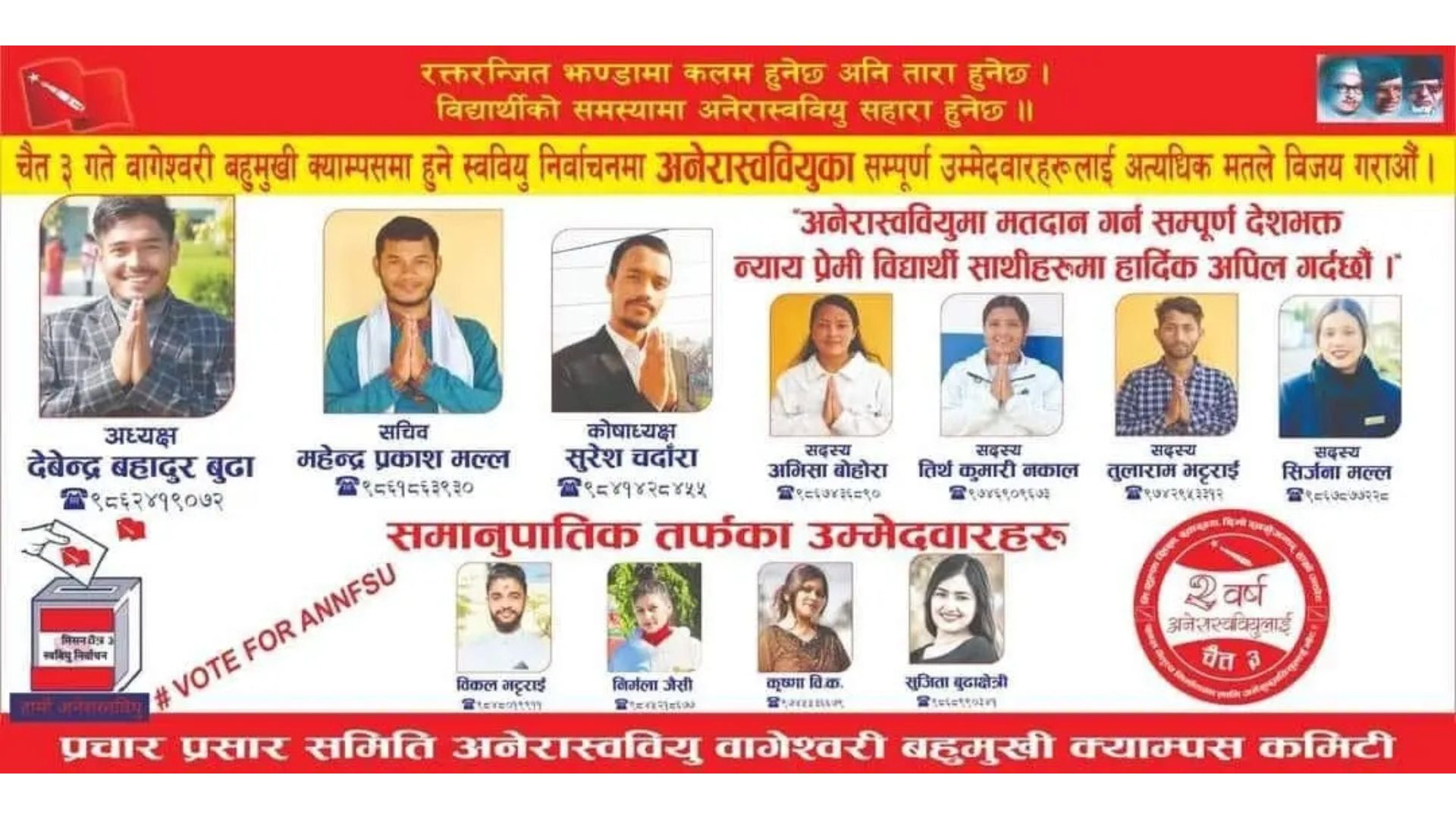 बागेश्वरी बहुमुखी क्याम्पस कोहलपुरमा अनेरास्ववियुको प्यानल नै विजयी
