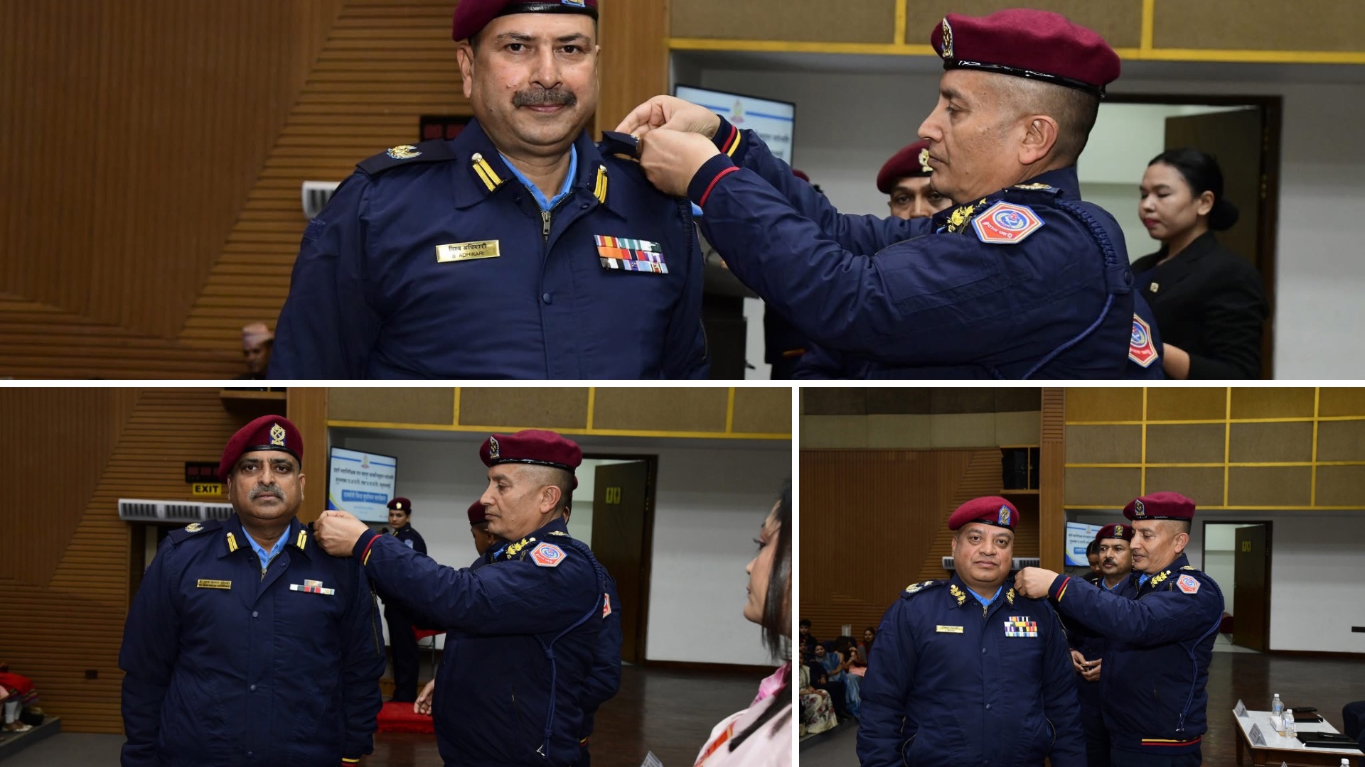 तीन जना प्रहरी अधिकृतहरू दर्ज्यानी चिन्हद्वारा सुशोभित