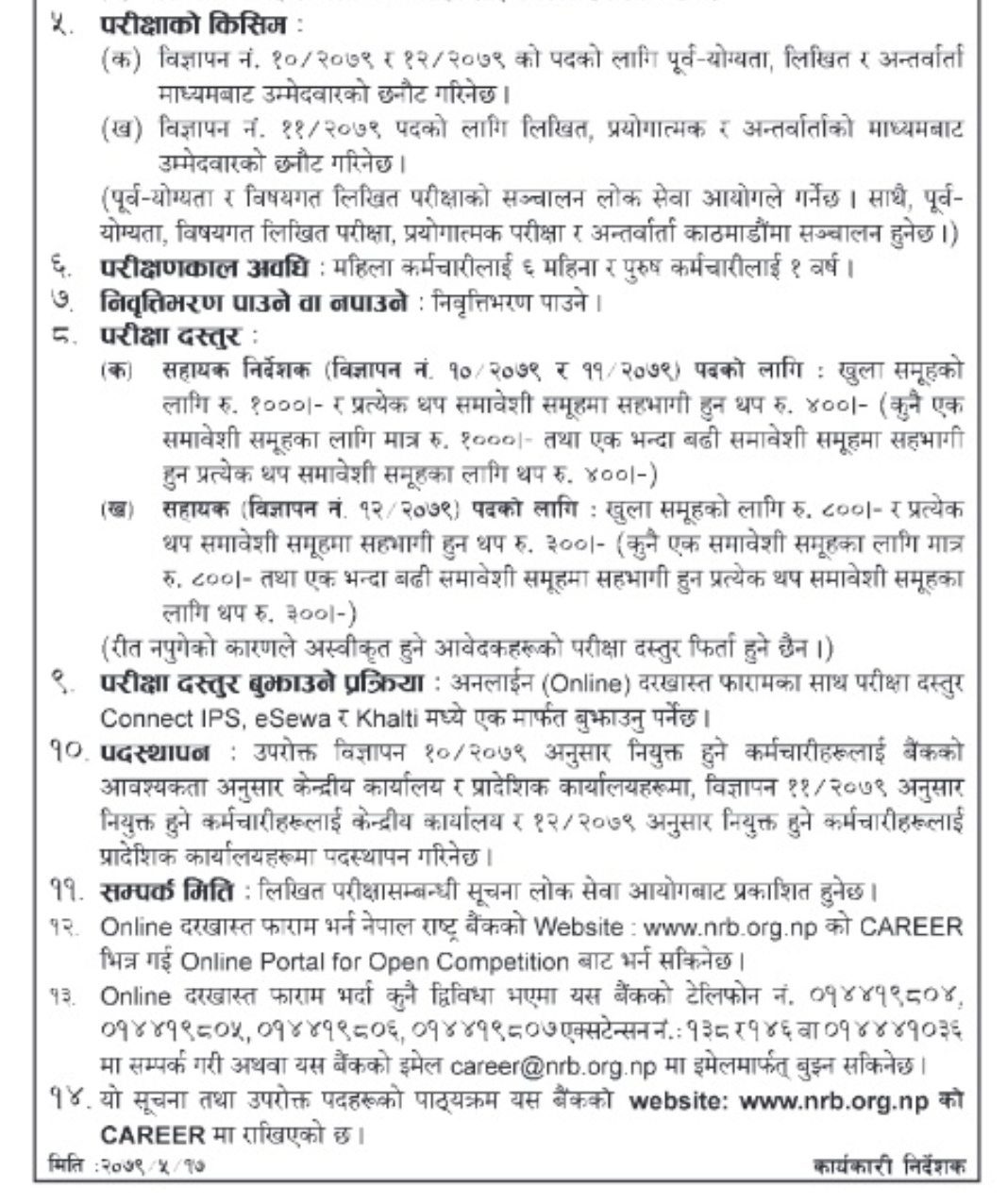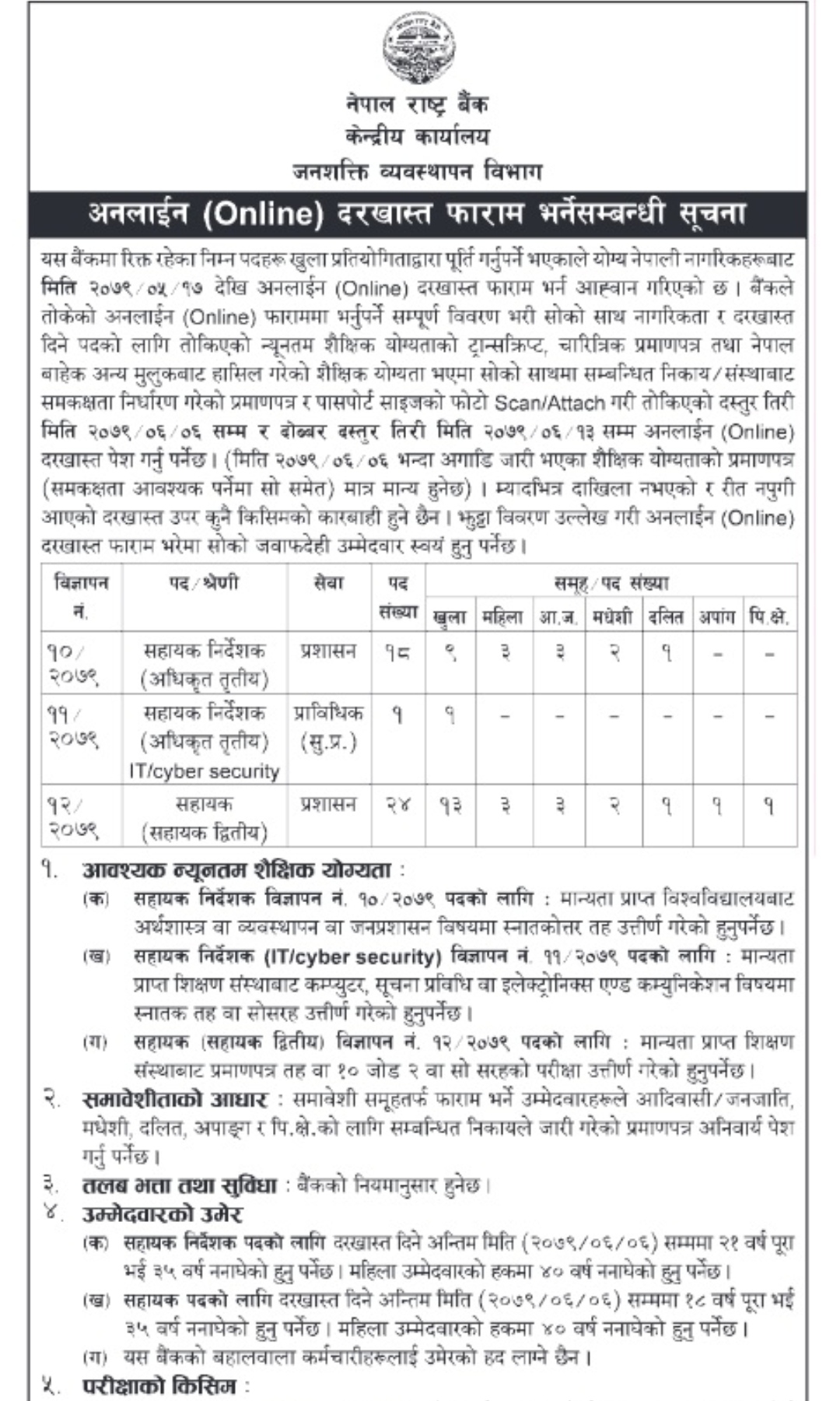 बैंकले सहायक निर्देशक १८ जना, प्राविधिक १ जना र प्रशासनतर्फ तथा सहायक पदमा २४ जनाका लागि दरखास्त आह्वान गरेको हो ।