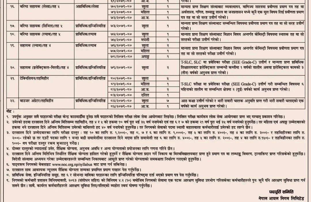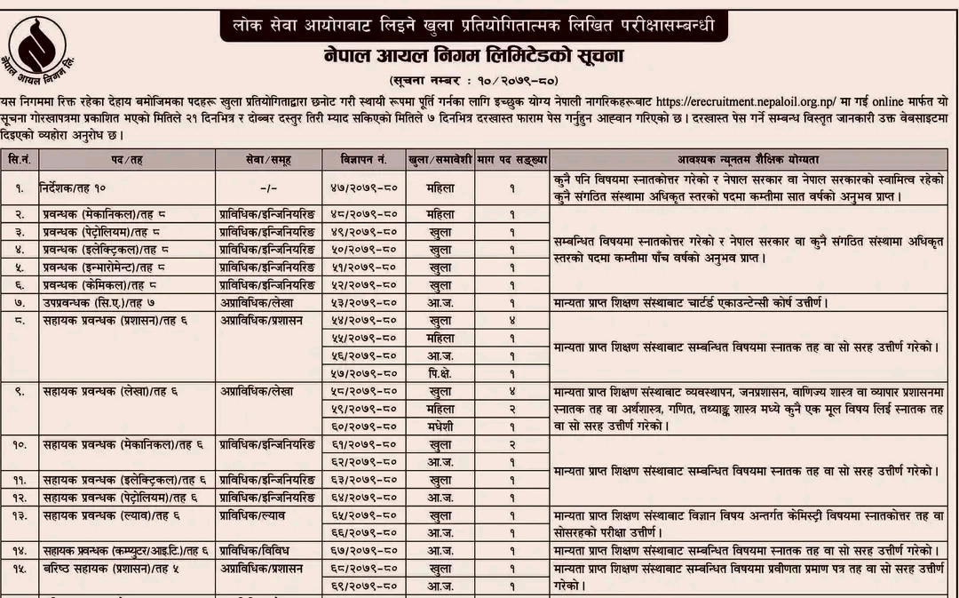 निगमले लोकसेवाबाट परीक्षा लिनेगरी ६० पदमा दरखास्त आह्वान गरेको हो। निगमले इच्छुकले २१ दिनभित्र दरखास्त दिन सक्नेछन् ।