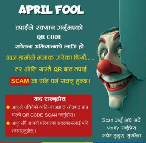 तर, क्यूआर स्क्यान गर्दा ‘अप्रिल फुल’ भन्ने सन्देश आउँछ, जसमा जनचेतनामूलक जानकारी पनि दिइएको छ । सन्देशमा भनिएको छ,