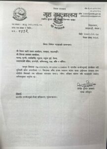 ‘द काउन्सिल अफ जेनजेड लुम्बिनी नामक संस्थाले गृहमन्त्रीलाई निवेदन दिएपछि मन्त्रालयले नेपाल प्रहरी प्रधान कार्यालय र सम्बन्धित जिल्ला प्रशासन कार्यालयहरूलाई यस्तो निर्देशनसहित पत्राचार गरेको हो ।