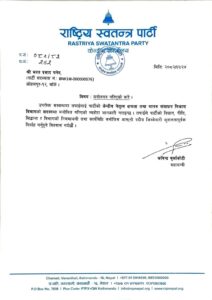 महामन्त्री कविन्द्र बुर्लाकोटीले हस्ताक्षर गरेको पत्रमा पनेरूको योगदानले पार्टी संगठन सुदृढ बनाउन मद्दत पुग्ने उल्लेख गरिएको छ।