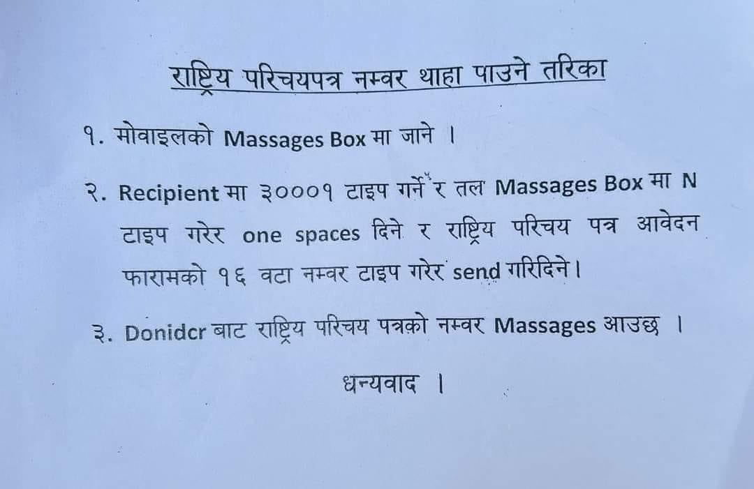 राष्ट्रिय परिचयपत्र नम्वर थाहा पाउने तरिका