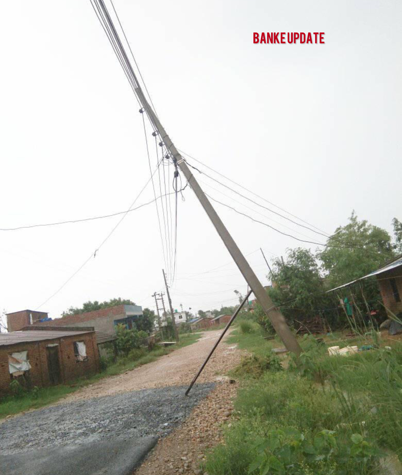 बाँकेको कोहलपुर लोकनगरमा विद्युतको पोल ढल्न लागेसी ३ दिन देखी स्थानिय त्रसित