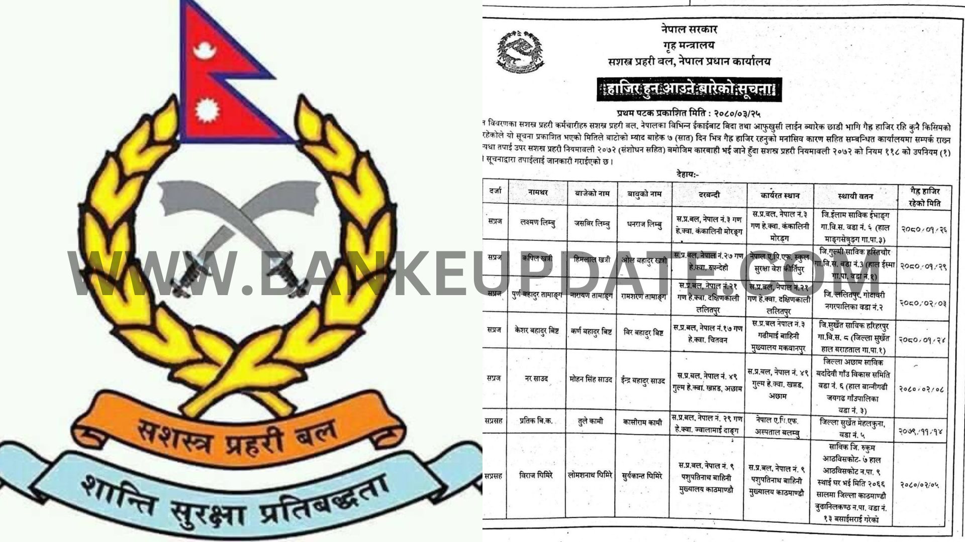 सशस्त्र प्रहरी बल नेपालका केही क्रमचारी तीन महिनादेखि सम्पर्क बीहीन ।