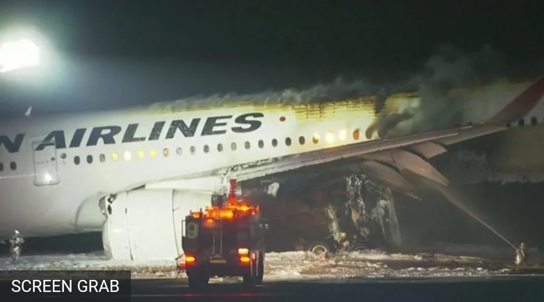 टोक्योस्थित विमानस्थलमा जापान एअरलाइन्सको विमानमा आगोको मुस्लो