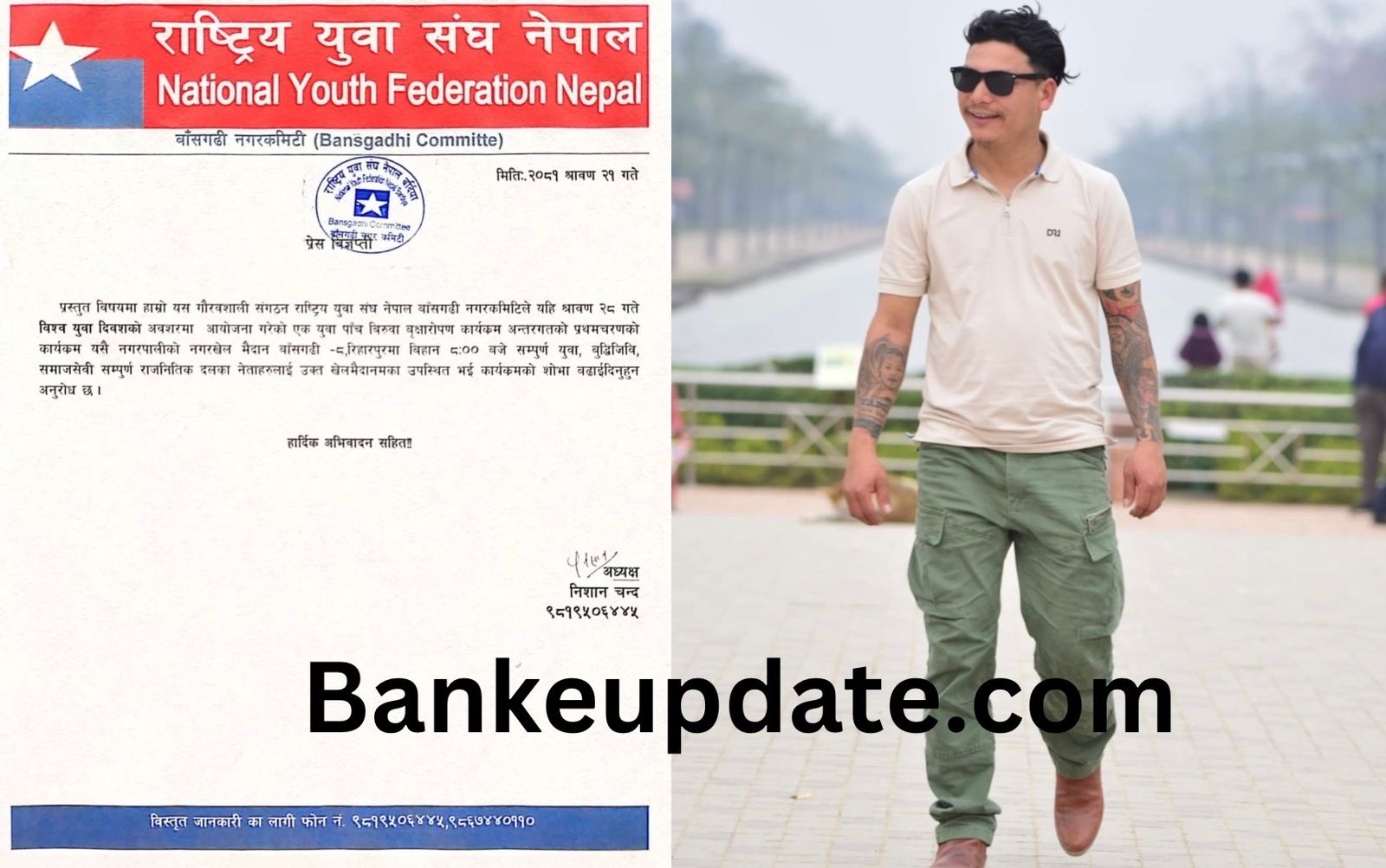 राष्ट्रिय युवा संघ नेपाल बर्दीया बाँसगढी नगरकमिटी अध्यक्ष निशान चन्दले विश्व युवा दिवशको अवशरमा वृक्षारोपण कार्यक्रम गर्दै