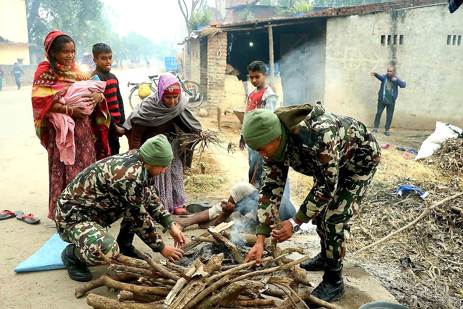 बाँकेमा शीतलहरबाट जनजीवन कष्टकर, सेना र स्थानीय तहद्वारा दाउरा तथा कम्बल वितरण