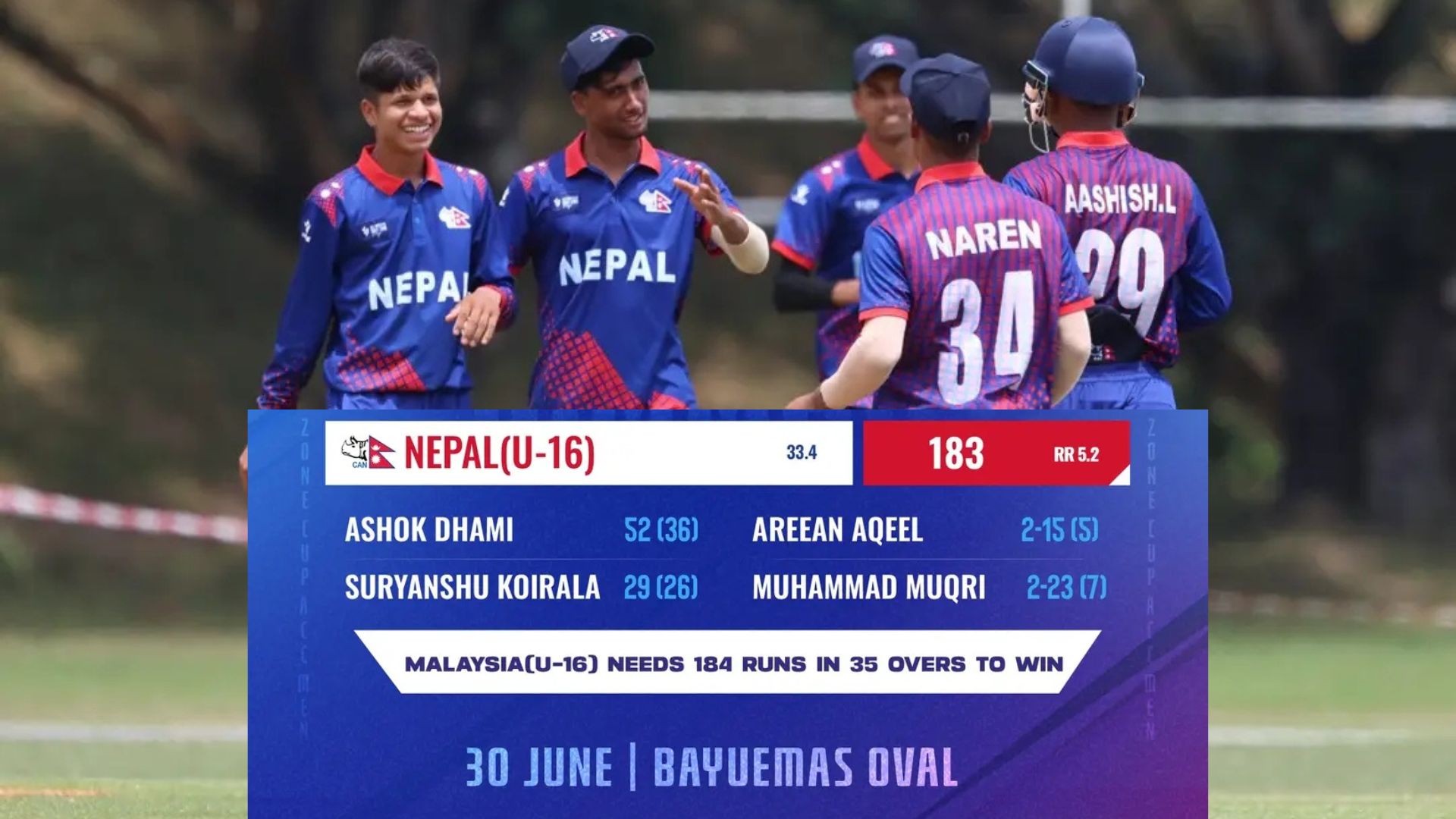 नेपालले मलेसियालाई दियो १८४ रनको लक्ष्य